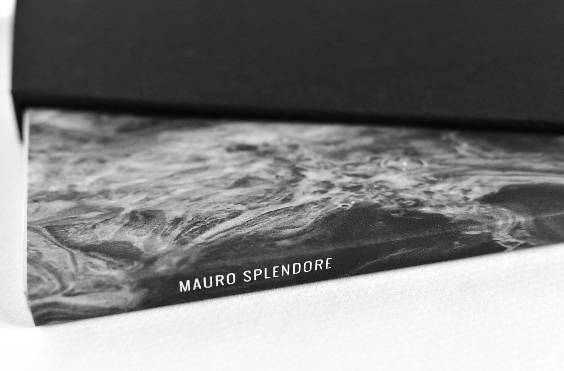 La foto individuata per la copertina si accorda, con corrispondenza spontanea, all'elemento artistico scelto per essere posto "in filigrana". Il cofanetto, che accoglie il libro, è infatti foderato al suo interno da fogli di carta giapponese dipinti a mano con la tecnica artistica del suminagashi. L'inchiostro galleggiante sul pelo dell'acqua, fagocitato dalla sottile e bianchissima carta di gelso, disegna flutti increspati e scie sinuose. Inquina il candore del supporto lasciando traccia indelebile.