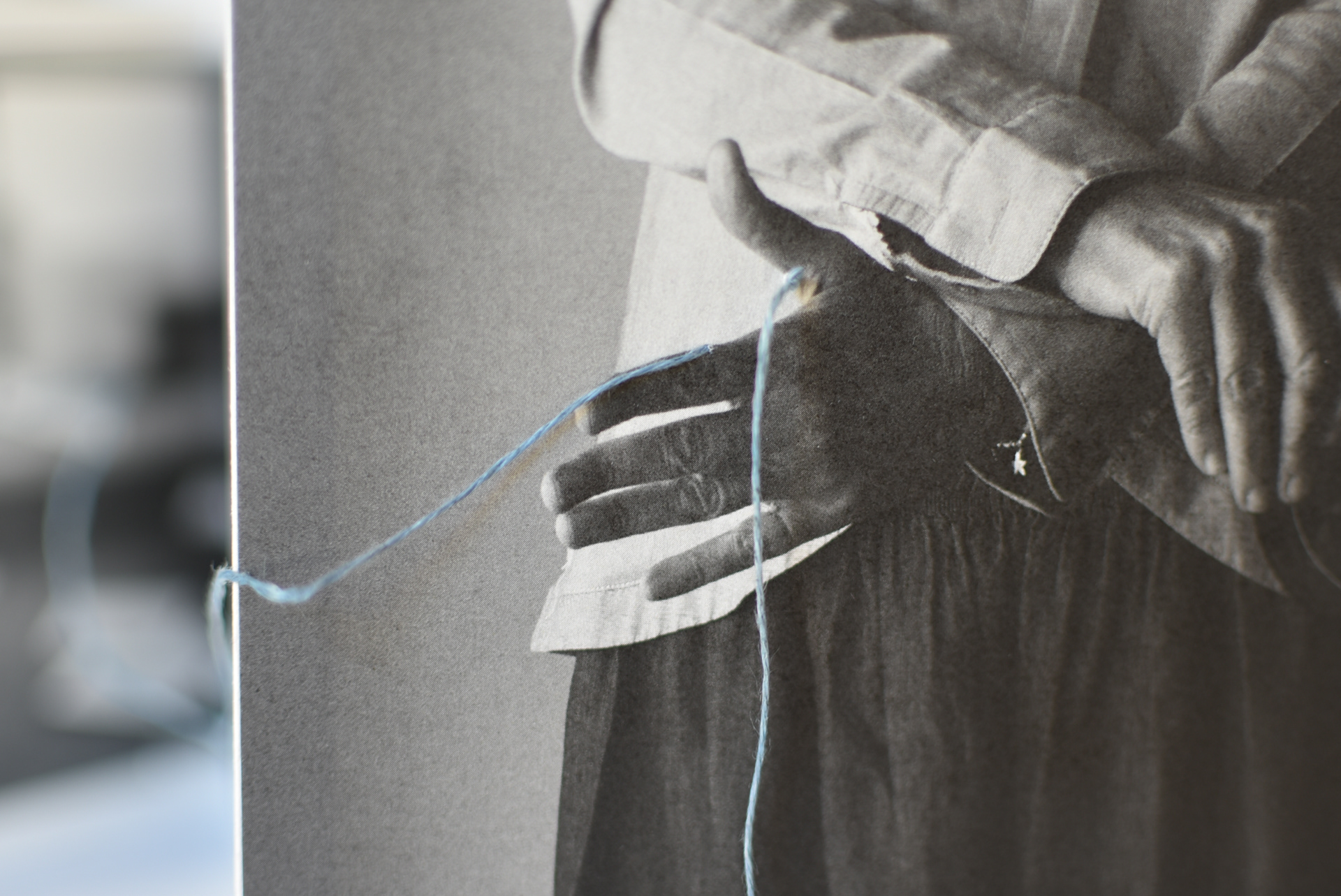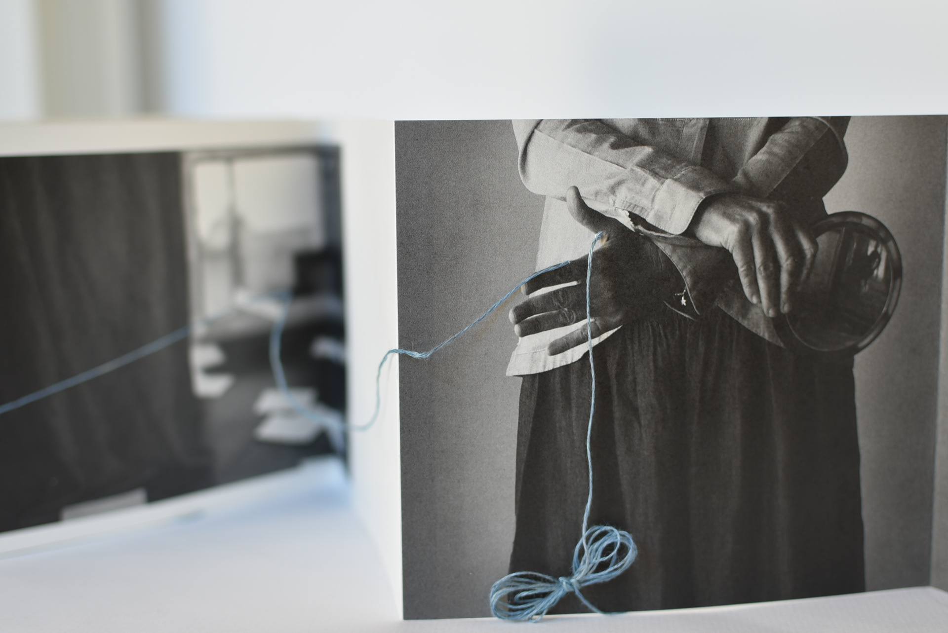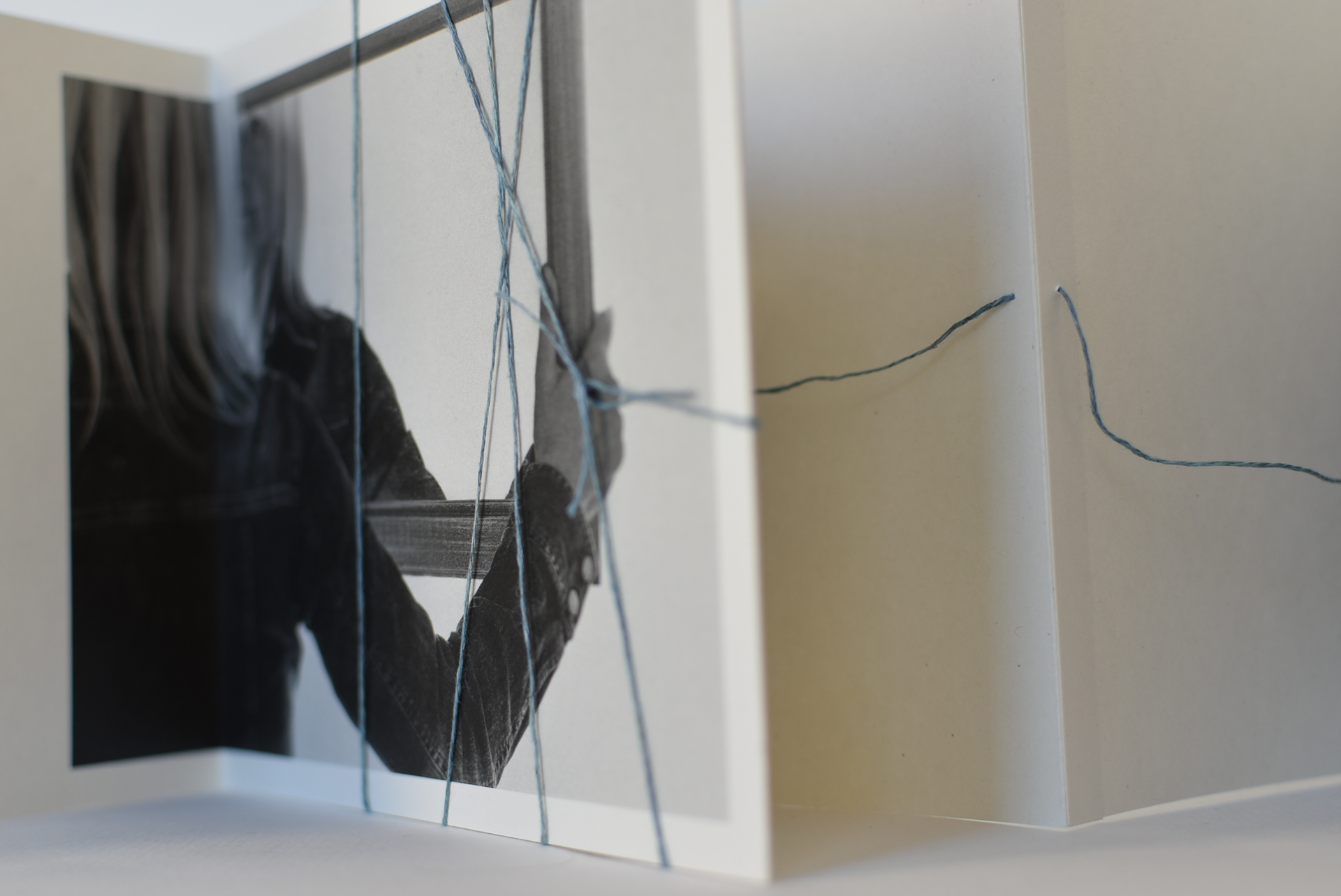 Dettagli: Un filo teso passa, scorre, si sovrappone, entra e riemerge. Il filo è sottile, grezzo, di un blu pallido. Compie il suo percorso tra le pagine, tra le pieghe, avviluppa un'immagine, penetra in un'altra segnando una linea retta che taglia senza dividere, si avvolge senza annodarsi per poi riprendere il suo percorso e definire una nuova traiettoria. Il filo blu pallido di "Io sono Cristine" si specchia da lontano in "Legarsi alla montagna", di Maria Lai, prima operazione di Arte Relazionale (Ulassai 1981).