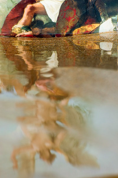 Osserviamo a tale proposito gli appunti e i saggi di colore che trovano spazio tra le pagine di Prove di colore per la ricerca sulla Prudenza di Tiziano e che mostrano come l’artista testa e declina il colore rosso lasciandosi accompagnare dalle tele di Tiziano e dalla simbologia che esso ha assunto nella storia dell’arte; lo stesso saggio di colore prosegue la sua evoluzione nelle ricette sperimentate dall’artista e testimoniate nelle pagine seguenti nelle quali il colore dialoga con cartoline vintage che ritraggono brani di paesaggio, in cui l’acqua o il monte è l’elemento sempre presente proprio come nei paesaggi del primo Tiziano. Dal punto di vista architettonico queste pagine seguono uno schema intimo, personale, codificato dall’artista solo per sé stesso, ma è indubbio che, negli anfratti di quegli appunti tecnici e delle allusioni pilotate dal libero agire dell’artista e del suo museo interiore, anche la mente del curioso osservatore ha la possibilità di spaziare e viaggiare e ancora di arricchire di inediti scorci il proprio museo immaginato.